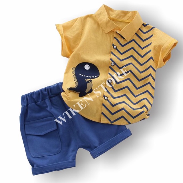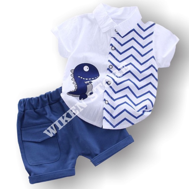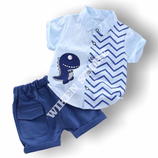 Harga SETELAN BAJU ANAK KEMEJA TREX “”SALUR (Dino)/ TREX 1-5 TAHUN