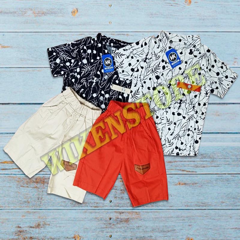SETELAN KEMEJA ANAK LAKI LAKI (BUNGA ASOKA)1-4 TAHUN