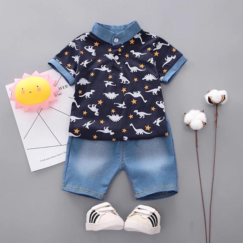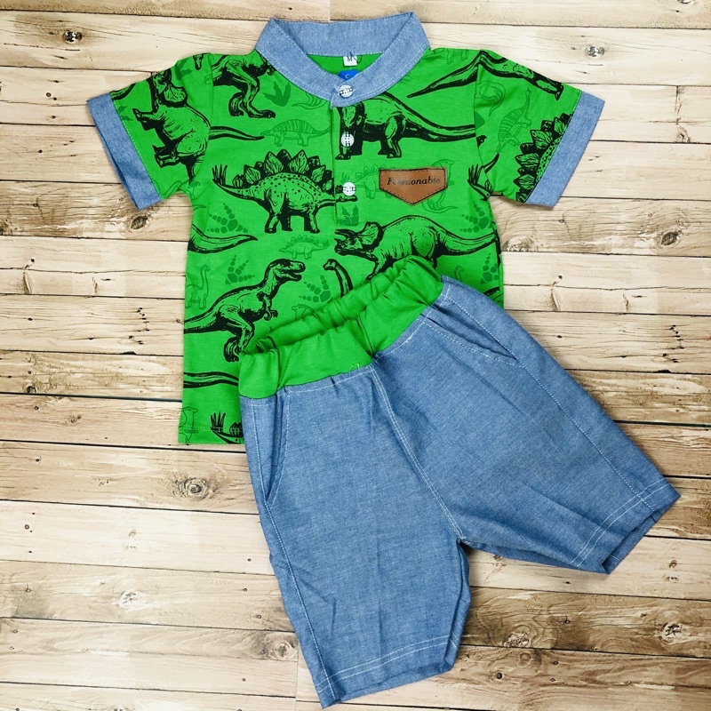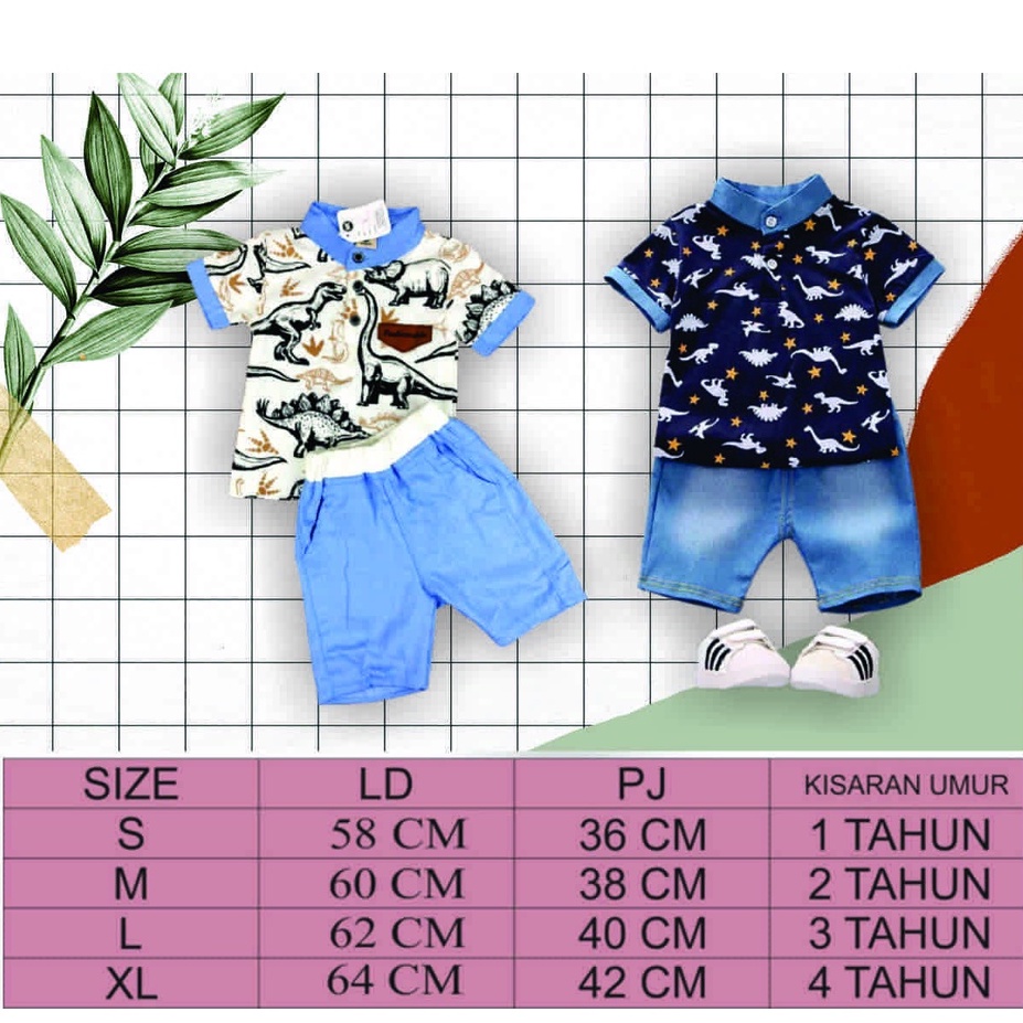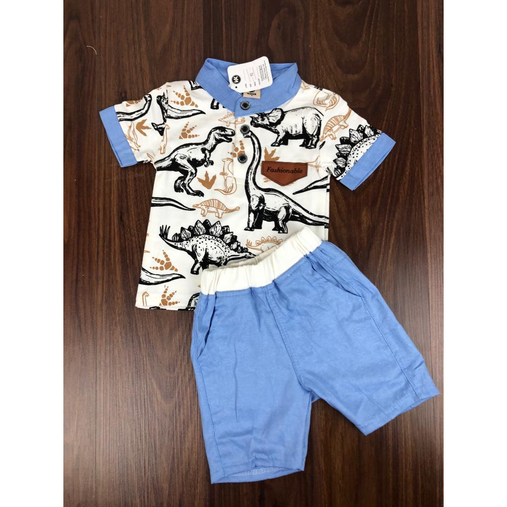 SETELAN BAJU ANAK KEMEJA TREX “”SALUR (Dino)/ TREX 1-5 TAHUN